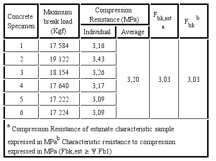 Considering that the manufacturing process, the trace, and the cure were the same for the two samples, then it is believed that this increase of resistance was given due to some problem in the molding of the blocks (carried out in the factory), to be seen that in the assay resistance test of the mortar the result was different.