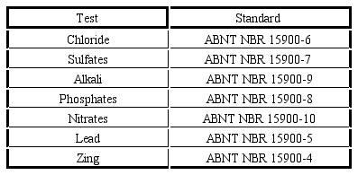 Chemical analyses were performed by the MICROLAB Environmental Laboratory of Goiânia – GO and contemplated the trials and standards specified in Table 2.