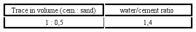Table 4 shows the trace in volume and the water/cement ratio of the mortar used to seat the blocks in the assembly of the prism.