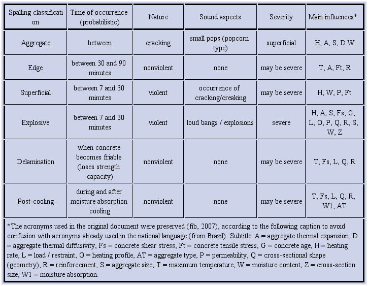In order to simplify and classify the spalling phenomenon, fib (2007) proposed to group it into six categories, namely[5]: