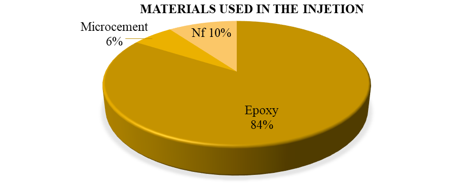 This study found that epoxy resins were used in 82% of the foundations, with microcement used in only 6% of the foundations. For the remaining 10%, the material used was not identified, as shown in figure 9.