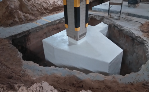 During construction of the foundations, either footings or blocks, the health and durability of the foundation was ensured through waterproofing. This is an important step due to these elements being in permanent contact with soil moisture, which, when not treated, will conduct water into the block through capillarity.