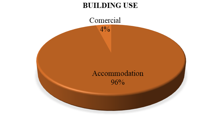 Of the 50 buildings verified, only 4% were commercial buildings, with the remaining 96% being residential buildings. Most of the buildings currently verified and recorded in this study are effectively residential buildings, as shown in Figure 3.