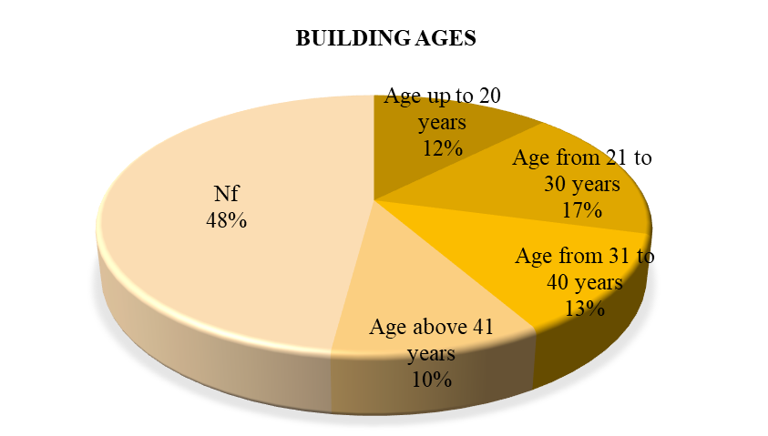 The study also attempted to identify the ages of each building, starting from year 1, when construction was finished, until the time it was catalogued by the company responsible for its recovery. However, this information was not made available for all the cases studied. The buildings were of different ages at the time of their recovery from ASR.