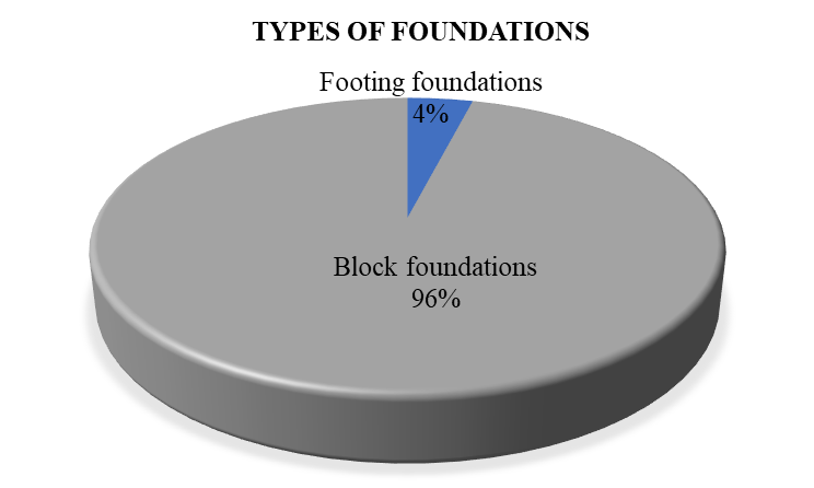 Only 4% of the foundations were of the footing type, with the other 96% made of blocks.