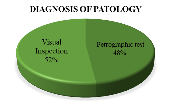 The Petrographic test was used to diagnose the reaction in 42% of the foundations, while the remaining 58% were diagnosed through visual tests only.