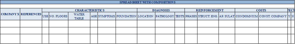 For this study, information was gathered on fifty buildings, both commercial and residential, for which their foundations had undergone a recovery procedure.