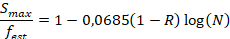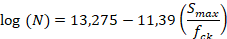 (TEPFERS; KUTTI, 1979) (3)where Smax is the maximum applied stress, ft,f is the static bending tensile strength, N is the number of cycles to failure, d and e are material parameters obtained by data regression, R is the ratio between the minimum and maximum stress, fck is the concrete characteristic strength, fest is the strength under analysis (tensile, compression or bending) or static tension strength of the concrete.