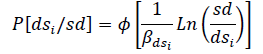 (3)Donde, βdsi es la desviación estándar del logaritmo natural del desplazamiento espectral para el estado de daño, ϕ es una función de distribución normal estándar acumulada, dsi son los estados de daño definido como: 1. Leve, 2. Moderado, 3. Severo y 4. Completo (justo antes de que se produzca el colapso).