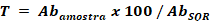 [Equação 1]Em que, T = Teor; Abamostra = leitura de absorbância obtida pela solução amostra; AbSQR = leitura de absorbância obtida pela solução que contém a substância química de referência de ACV10,12,15.