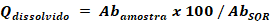 [Equação 2]Em que, Qdissolvido = Quantidade dissolvida de ACV dissolvido em HCL 0,1 mol L-1 em 45 min; Abamostra = leitura de absorbância obtida pela solução amostra; AbSQR = leitura de absorbância obtida pela solução que contém a SQR10,12,13.
