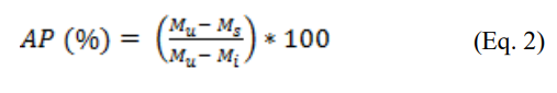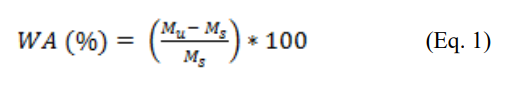 (1)where Mu. (g) is the mass of the sample saturated with water and Ms (g) is the mass of the sample after drying.