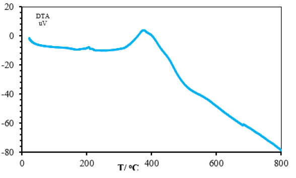 The TGA and DTA curves of the prepared Ni and Cu complexes are given in Figures 9 to 12. These curves characterize and compare the thermal degradation of these two complexes at 10 °C min-1 heating rate, under nitrogen and between 20-800 °C. For the evaluation of the thermal degradation kinetics parameters at a single heating rate (10 °C min-1), the activation energy (Ea) and pre-exponential factor (Z) are determined by using the Coats-Redfen method for the reaction order n ≠ 1. When the Coats-Redfern method is linearized for a correctly-chosen order of reaction (n) yields the activation energy (Ea) from the slope of the equation: