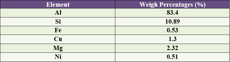 In the present study, commercially available Al-alloy (ASTM LM 13 as given in Table 1) piston alloy was used, which is a multicomponent Al-Si-Ni-Cu-Mg alloy with lower concentrations of Fe and Mn. In the present investigation low cost and naturally available hard ceramic Garnet (chemical formula of Gr is Fe3Al2Si3O12) are used to reinforcements Al-alloy. Garnet was added in the proportion of 6 wt.% to 12 wt.% in steps of 3 wt.% Table 2 shows the nominal of Al-composites samples.