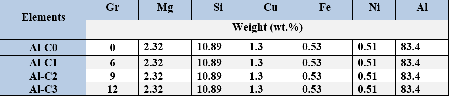 In recent years many researchers have worked on the combination of graphite with SiC and Al2O3 and it was found similar results. The study of Suresh and Hemanth14 focused on the effect of chills on mechanical characteristics and wear properties of the composite. Whereas, Sharifi and Karimzadeh15 investigated wear behavior of aluminum matrix hybrid nanocomposites by reinforcing of 1 wt.% Gr and 10 wt.% SiC with A356 using powder metallurgy technique to investigate the tribological properties.