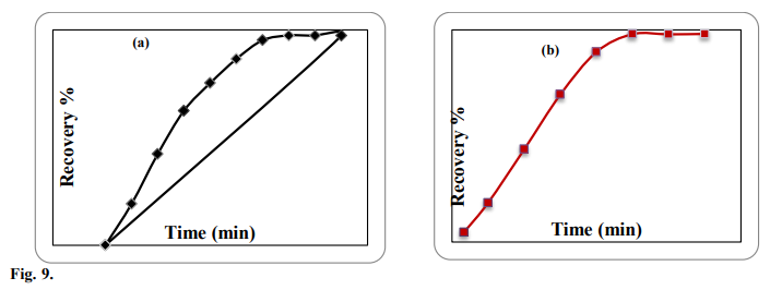 The adsorption and desorption times for Pb(II) were investigated under optimized conditions. As shown in Fig. 9a, it appears that MIIP showed good performance in adsorption during first 5 min and reached to equilibrium after 7 min and excess time does not provide any significant change in recovery. This time, probably due to plenty cavities that imprinted on the surface of thin MIIP that provide low diffusion resistance, is reliable and it can be stated that the process has fast equilibrium.