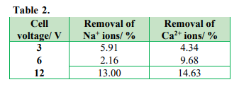 In terms of the removal rate of the of Ca2+ and Na+ cations, applying ED treatment for 1 h (for evaluation this treatment), the results are in Table 2, and, in this evaluation, the best results were obtained using a voltage of 12 V. Also, after the ED treatment (operated with a constant 12 V), the initial concentration of lactate ions was reduced in 36.31%. The conductivity of the whey solution (after UF) was around 17.4 mS cm-1.