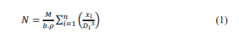 (1)where: N = Number of particles (units); M =Total retained mass in the grain-size analysis (g); b = factor assuming cubic format particle = 1; ρ = verdete rock density = 2.376 x 10-3 g mm-3; xi = retained weight fraction of a group of particles in the grain-size analysis; Di = nominal mean diameter of that group (mm).