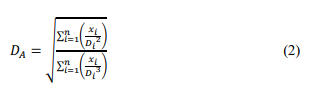 (2)where: DA = Arithmetic mean diameter (mm); xi = retained weight fraction of a group of particles in the grain-size analysis; Di = nominal mean diameter of that group (mm).