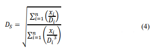 (4)where: DS = Surface mean diameter (mm); xi = retained weight fraction of a group of particles in the grain-size analysis; Di = nominal mean diameter of that group (mm).