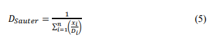 (5)where: DSauter = Sauter mean diameter (mm); xi = retained weight fraction of a group of particles in the grain-size analysis; Di = nominal mean diameter of that group (mm).