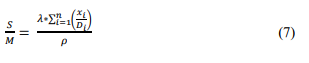 (7)where: S/M = Specific surface (cm2 g-1); M = Sum retained mass of sieves 28 to 200 mesh (g) λ = factor assuming cubic format particle = 6; xi = retained weight fraction of a group of particles in the grain-size analysis; Di = nominal mean diameter of that group (cm); ρ = verdete rock density = 2.376 g cm-3.
