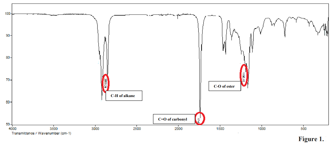 From the analysis of the infrared spectra, it was possible to observe in all biodiesel the presence of bands characteristic of carbonyls (C=O), aliphatic C-H and C-O ester. According to Barbosa19, a band in the range of 1650 to 1750 cm-1 indicates axial deformation of the carbonyl C=O bond. In addition, the presence of bands between 2853 and 2854 cm-1 indicates an aliphatic C-H band; and in the range of 1390 to 1500 cm-1 correspond to ester C-O. In this case, the characteristic bands of aliphatic C-H and C=O of carbonyl correspond to the starting vegetable oil, whereas the band referring to the ester C-O bond indicates the formation of the desired product, biodiesel. In this way, the infrared appears as another way of confirming that the product (biodiesel) was obtained through the starting vegetable oil. In the absence of the ester C-O band, there would be no conversion of triacylglyceride to ester, having only the starting vegetable oil, not biodiesel. This can be observed in Fig. 1. The other spectra are not shown, since the three characteristic bands, which are the bands to emphasize in the work, are the same for all biodiesels, only occurring displacements due to the alcohol of departure of the reaction.