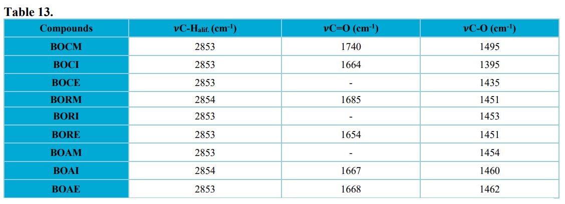 The spectra were collected in the Perkin-Elmer FT-IR 1000 spectrophotometer in the range of 4000 to 200 cm-1 in the Department of Chemistry – UFV and were made in ATR.