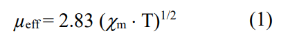where: µeff - effective magnetic moment χm, cm – magnetic susceptibility per molecule and T - absolute temperature.