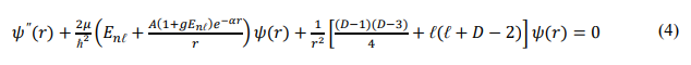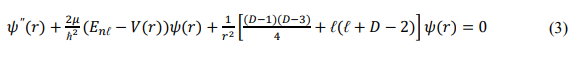 The radial part of the Schrödinger equation in D-dimension39 is given by Eq. 3.
