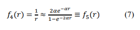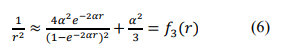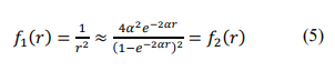 Here, we have ignored the second expansion term α(1-e-2ar)/(12e-ar) when expanding Eq. 6. Furthermore, the rationality and validity of this expansion is given in Fig. 1b, with α = 0.5. in Figs. 1c and 1d, we observe that the approximation f3(α) corresponds to that of f1(α) when α ≤ 0.05. As such, we see that the approximation f3(α) is better than that of f2(α).