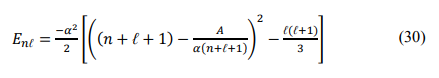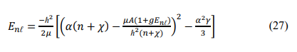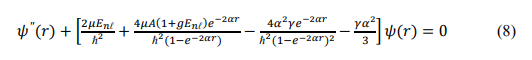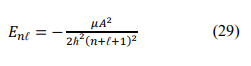 where μ is the reduced mass, Enℓ is the non-relativistic energy eigenvalues to be determined. Substituting Eq. 2 into Eq. 3 gives Eq. 4.