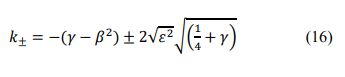 To obtain the value of 𝑘, we set the discriminant of the square root in Eq. A8 equal to zero. As such, the new eigenvalue equation (Eq. A10) is obtained as