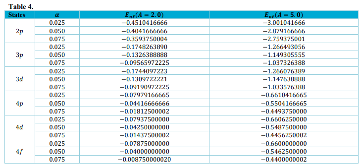 Setting the parameters D = 3 as α → 0andg → 0 we obtain the energy eigenvalue equation (Eq. 29):