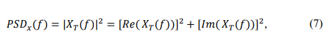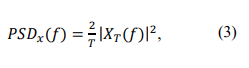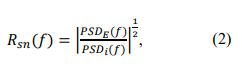 Note that Eq. 2, for calculation of 𝑅𝑠𝑛(𝑓), involves the ratio between PSDE and PSDi, so the factor 2/T of Eq. 3 will be canceled in the operation. Hence, in this work, PSDE and PSDi will be obtained using Eq. 7: