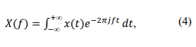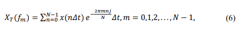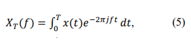 where 𝑗2 = −1 is the imaginary unit and, among other properties, converts the time domain into a frequency domain. Since the signals are considered in the time interval between 0 and 𝑇, the Fourier transform calculations are made from the integral, according to Eq. 5: