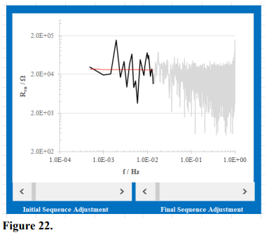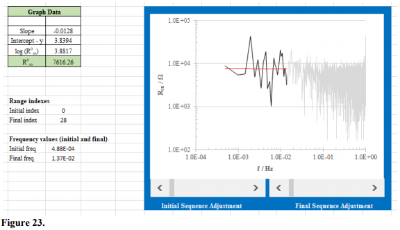 As the goal of this work is to provide a routine to obtain R0sn using Excel software, we indicate the criterion that will be used for delimiting the frequency region, without elaborating on any particular merits of this procedure, leaving it to the ENA user to select the criterion most suitable for the study being undertaken. In addition to describing how the value of R0sn can be calculated using Excel, the results are compared with those obtained for the same set of experimental data using Origin® software.