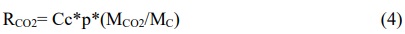 where RCO2 [gCO2 L-1 d-1] is the biofixation rate and rCO2[gCO2 g-1 dry cell].