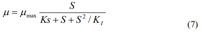 where Ks and S are the same meaning as Mönod, and KIis the inhibition constant.