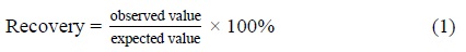 The accuracy of the methods was assessed by the standard addition of solutions with known concentrations of each nutrient to the samples of microparticle suspensions (without nutrients). The recovery was determined as the percentage difference between the average experimental concentration and the theoretical concentration at each level.