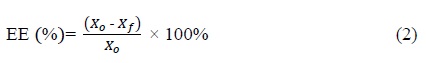 (2)where Importar imagen is the nutrient concentration quantified in the solution of microparticles and Importar imagen is the nutrient concentration quantified in the filtered solution of microparticles.