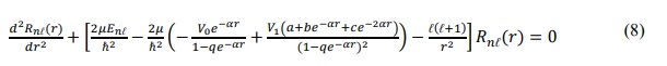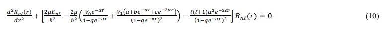 It is noted that for a short-range potential, the relation in Eq. 9 is a good approximation to 1/r2, as proposed by Greene and Aldrich (1976), Ikot et al. (2020b) and Okorie et al. (2020). This implies that Eq. 9 is not a good approximation to the centrifugal barrier when the screening parameter α becomes large. Thus, the approximation is valid when α << 1. Substituting the approximation Eq. 8 into Eq. 9, an equation of the form is obtained: