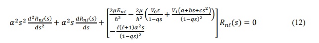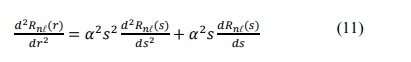 To solve the differential equation above, the transformation s = e–αr is used so as to enable to apply the NU method as a solution technique to the hypergeometric-type differential equation. Hence, this transforms d2 Rnℓ (r)/dr2 into the form: