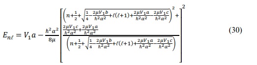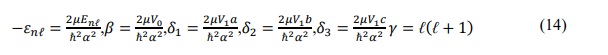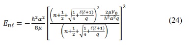 where μ is the reduced mass, Enℓ is the energy spectrum, ћ is the reduced Planck’s constant and n and ℓ are the principal and orbital angular momentum quantum numbers, respectively (or vibration-rotation quantum numbers in quantum chemistry) (Onate et al., 2018c). Substituting Eq. 1 into Eq. 7 gives: