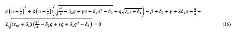 Substituting Eq. 14 into Eq. 17 and carrying some simple manipulative algebra, it is possible to arrive at the energy eigenvalue equation of the q-deformed Hulthen plus quadratic exponential-type potential in the form: