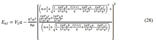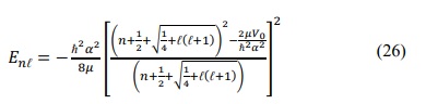 Equation 26 is in agreement with the energy equation given in Eq. 39 (Ikhdair, 2009), Eq. 31 (Ikhdair and Sever, 2007), Eq. 34 (Agboola, 2009), Eq. 35 (Bayrak et al., 2006) and Eq. 27 (Jia et al., 2008).
