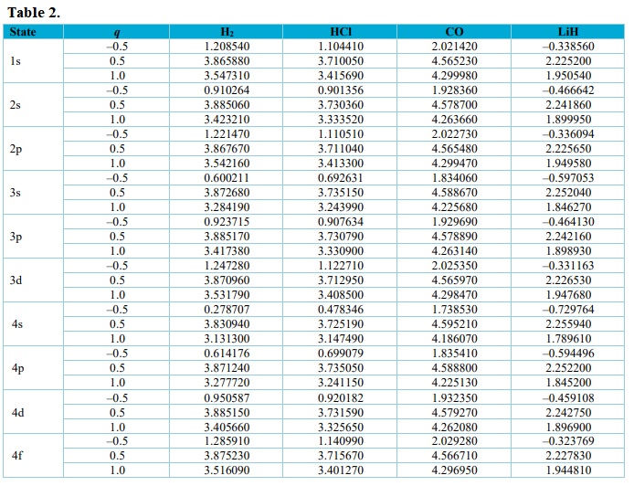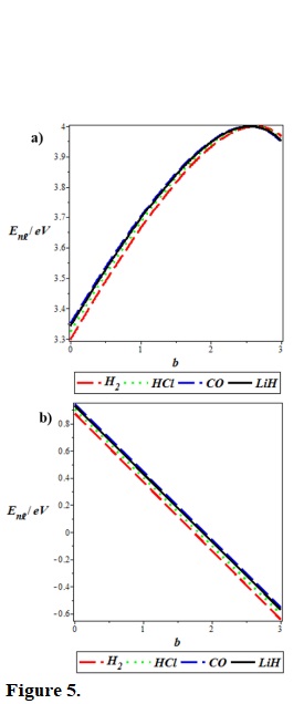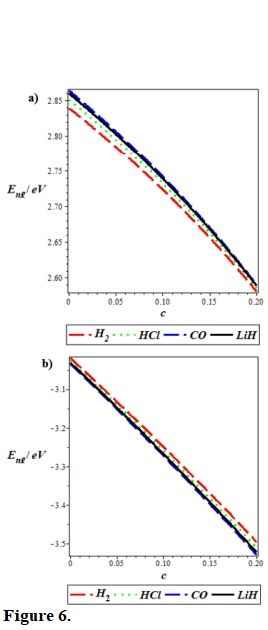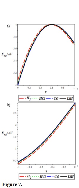In Tab. 2, the energy values for the q-deformed Hulthen-quadratic exponential-type potential was shown for H2, HCl, CO and LiH diatomic molecules for various values of the deformation parameter and of quantum states. It is seen clearly that when the deformation parameter is q = –0.5, the energy is low and for instance in LiH molecule it becomes more bounded. But for q = 0.5, the energy is raised significantly although drops slightly and remains positive when q = 1 (i.e., absence of deformation).