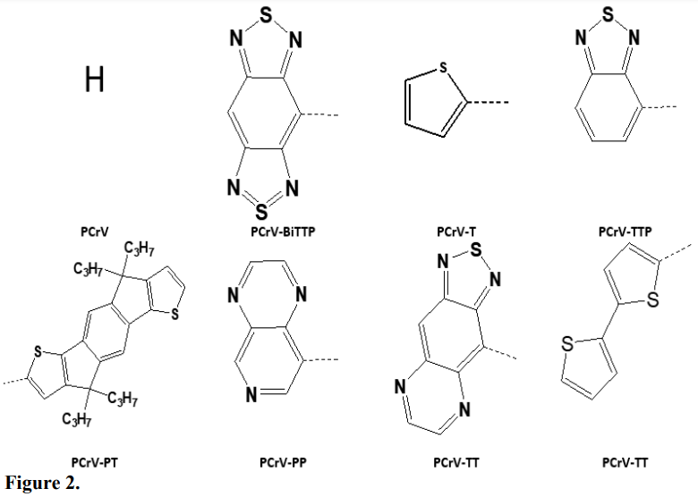 Polymeric (Fukuta et al., 2015; Huang, 2015; Scharber and Sariciftci, 2013) (organic) solar cells are becoming more and more important in the field of scientific research. These cells have many potential advantages over inorganic solar cells (Koh et al., 2008; Tarascon, 2011; Zeyada et al., 2016), such as relatively low cost, lightweight, interesting electronic properties, good mechanical properties and ease of processing. However, the main limitations of this type are the low power-to-energy conversion efficiency and the relative instability compared to silicon-based solar cells. However, this efficiency depends on highest occupied molecular orbital (HOMO), lowest unoccupied molecular orbital (LUMO), and energy gap properties.