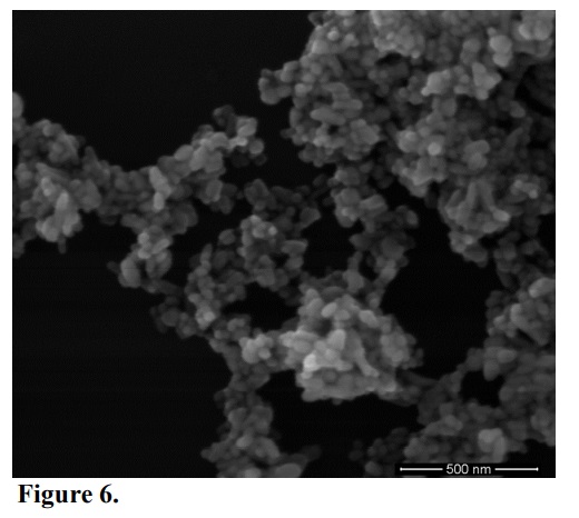Figure 6 shows FEG-SEM images of TiO2/Au nanoparticles. Although it is possible to observe the TiO2 nanoparticles, the spherical gold nanoparticles are not visible. It is believed that this was due to image resolution or even the low concentration or size of the nanoparticles. However, it is noteworthy that the other characterization techniques proved their presence.