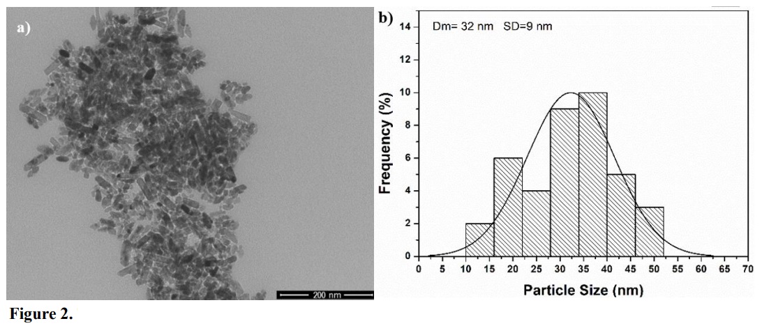 Recently, TiO2 nanomaterials have been prepared by different methodologies, where liquid phase processing stands out. The characteristics of the material are closely linked to the synthesis methodology (S. Gupta and Tripathi, 2011). It is verified in the literature the possibility of obtaining nanomaterials with different size, morphology and crystallographic phase, as it has been reported the obtention of 60 nm size TiO2-anatase nanoparticles (J. Zhang et al., 2017), 5.7 nm sized nanorods (Dalod et al., 2017) and even TiO2-rutile nanotubes sizing 20 nm in diameter (Yan et al., 2010).